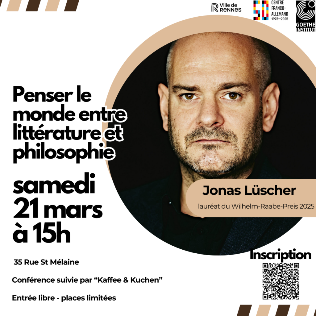Cette conférence propose une immersion intellectuelle unique, où la littérature devient un espace de réflexion sur notre époque. Elle est animée par Richard Blanchet, maître de conférence en civilisation allemande à l’université de Rennes 2, qui apportera un éclairage riche et accessible sur l’œuvre et la pensée de Lüscher.