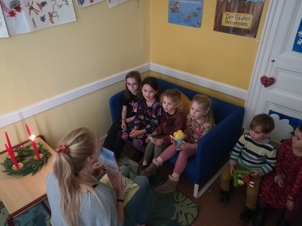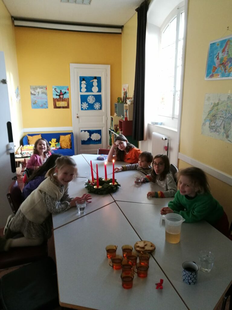 Première bougie allumée, deuxième bougie allumée, histoires lues par Marie (notre professeur), moments partagés… un instant calme et chaleureux.