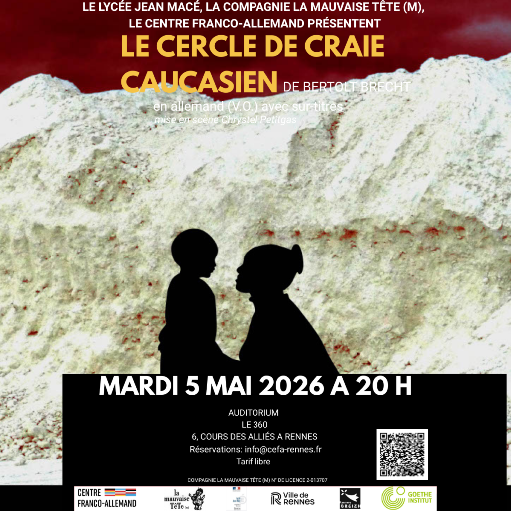 Comme les années précédentes, nous avons à nouveau le plaisir de vous inviter à une représentation de la pièce “Le cercle de craie caucasien” de Bertolt Brecht, mise en scène par les élèves du lycée Jean Macé (Rennes).